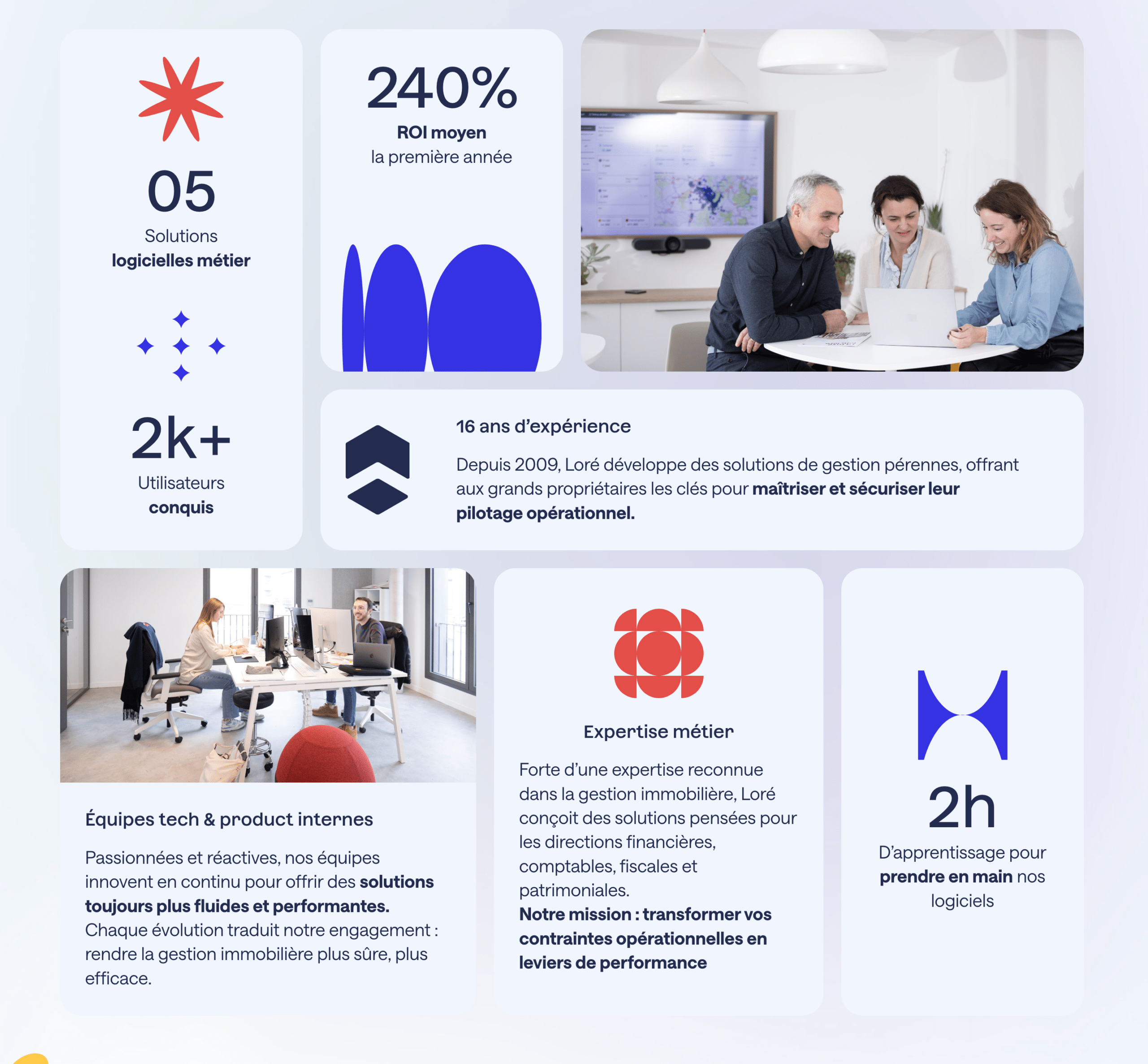 Depuis 2009, Loré accompagne ses clients dans leurs opérations stratégiques de gestion financière, en combinant solutions logicielles et accompagnement dédié aux entreprises et grands groupes, principalement dans le secteur immobilier. Développé en 2017, leur logiciel foncier permet d’optimiser la taxe foncière de leurs clients, générant des économies tout en sécurisant leur gestion auprès de l’administration. Aujourd’hui, Loré est leader sur le marché du logement social, avec un client sur deux dans le parc des bailleurs sociaux et un taux de satisfaction proche de 100%.